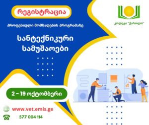 პროგრამაზე #რეგისტრაცია შესაძლებელია 2-19 ოქტომბრის პერიოდში ონლაინ ვებ გვერდზე- https://vet.emis.ge ან კოლეჯში ვიზიტით.